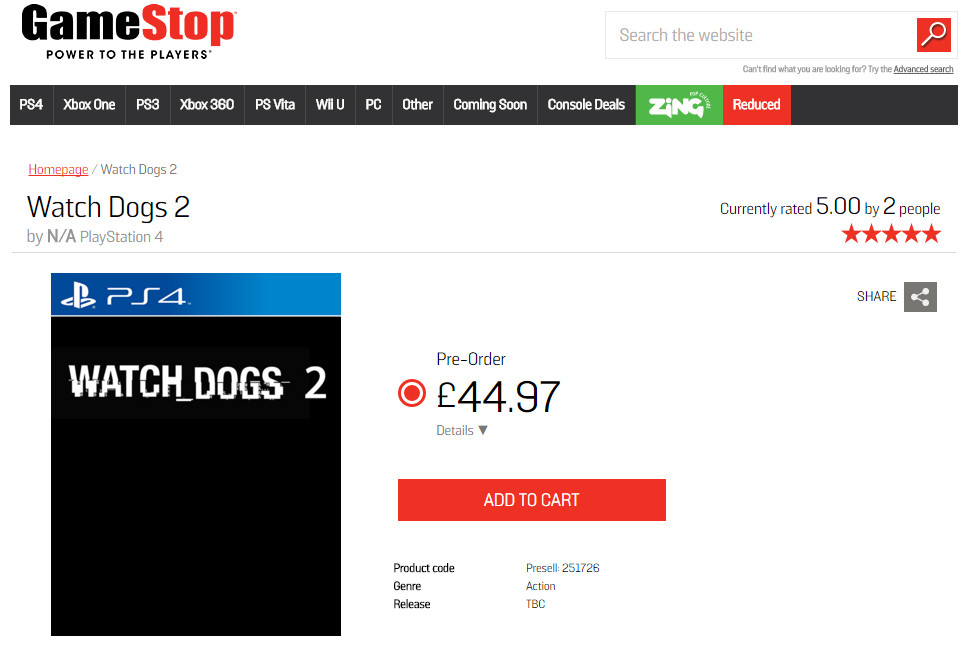 فروشگاه گیم استاپ، عنوان Watch Dogs 2 را پیش فروش می کند| دیگر قطعی شد!
